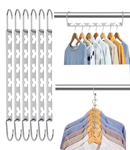 H&S Metall utrymmesbesparande hängare (set med 6) – utrymmesbesparande klädhängare paket för garderober – magisk klädhängare platsbesparande att hänga kläder skjortor byxor för garderob och garderob