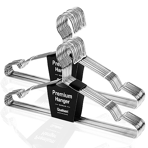 Qualsen Klädhängare metallhängare för kläder, vuxna klädhängare utrymmesbesparande, 20-pack 32 cm silver slitstarka hängare för blus klänning skjorta jacka byxor