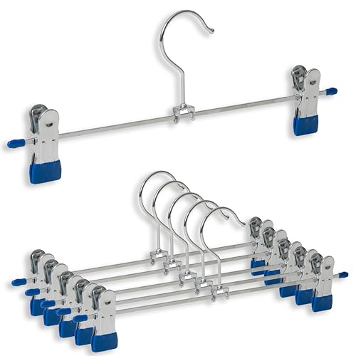 IPEA Hängare för byxor i metall med smal design - Set med 6 delar - Rymdbesparande klädhängare i rostfritt stål med klämma för upphängning av jeans, kjolar, kläder, garderobstillbehör och garderob