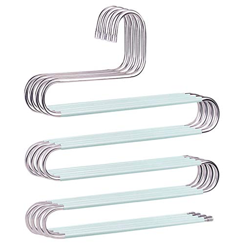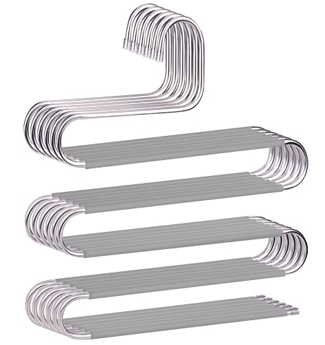 devesanter Byxor hängare utrymme spara halkskydd 6-pack S-formade byxor hängare rostfritt stål klädhängare garderob förvaring organiserare för byxor jeans halsduk hängande grå och vit