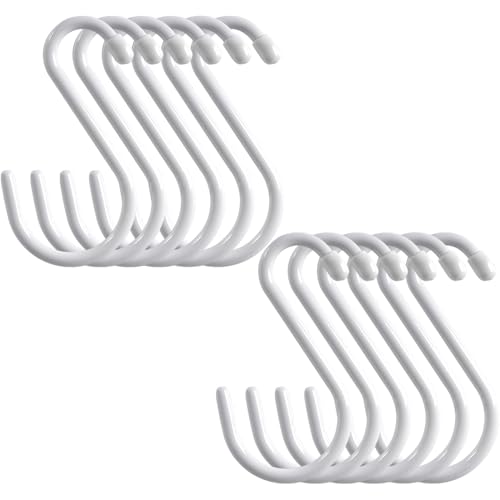 Cozihom 15,2 cm kraftiga vinylbelagda S-krokar, svarta gummibelagda S-krokar, extra tjock halkfri metall S-hängare för garderob, trädgård, garage, kökshängning, vit, 12-pack