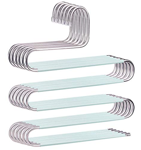 Devesanter Byxor hängare utrymme spara halkskydd 4-pack S-formade byxhängare rostfritt stål klädhängare garderob förvaring organiserare för byxor jeans halsduk hängande grön