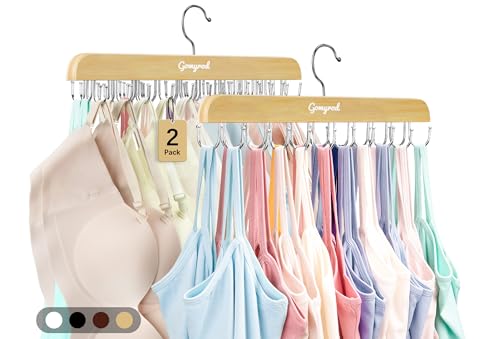 Gomyrod BH-hängare för garderob, tank top hängare 2-pack med 20 krokar rymmer 40 behåar, kapacitet vikbar trä platsbesparande hängare, 360°roterande garderobsorganisatör och förvaring för sovsal och