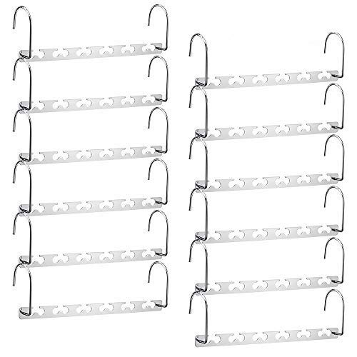 Meetu utrymmesbesparande galgar multifunktionella klädhängare i rostfritt stål 6 x 2 spår magisk hängare kaskadhängare uppdaterad krok design garderob organiserare hängare (paket med 20)