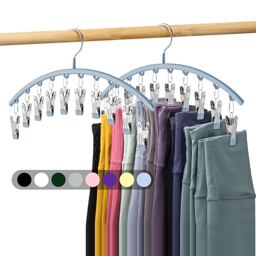 Volnamal legging organisatör för garderob, metall yogabyxor hängare med gummibelagd 2-pack med 10 klämmor rymmer 20 leggings, hängare platsbesparande hängande garderobsorganisatör för