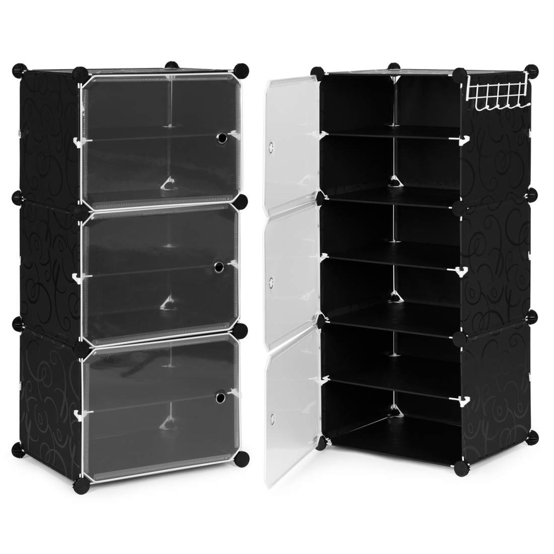 BRIAN & DANY 16 kuber bärbar garderob, modulär förvaringsorganisatör med dörrar och 3 hängare, djupare kuber för större utrymme