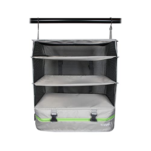 Grand Fusion Stow-N-Go bärbara hängande resehyllor, packorganiserare för bagage. Handbagage garderob med hängare för kläder och förvaringsfack, resetillbehör från stor, ljusgrå