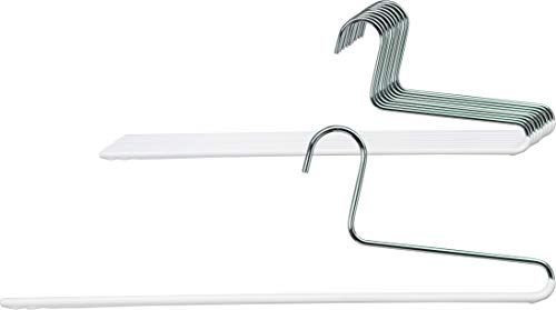 MAWA hängare för byxor, KH, set med 10, hängare för kläder, platsbesparande och halkfri, perfekt för jeans, tyg och kostymbyxor, med halkskydd, 35 cm, vit