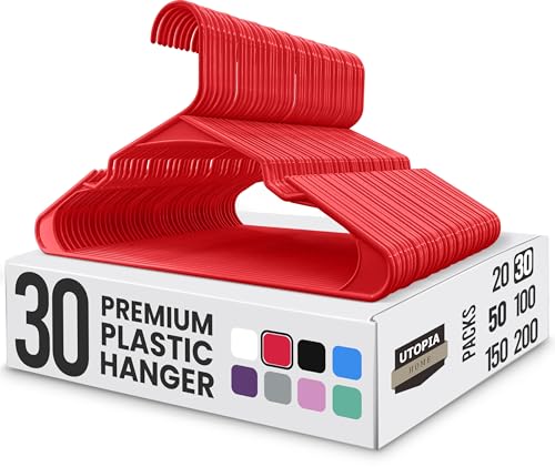 Utopia Home plast standardhängare för kläder tunga och platsbesparande skårade hängare (paket med 30, röd)