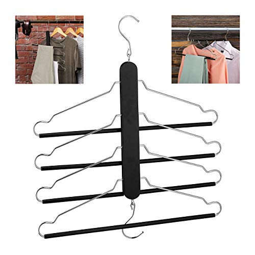 Relaxdays Utrymmesgalgar flerfaldig, 4 klädhängare med hängare, trä, metall, flera klädhängare utrymmesbesparande, svart, 1 styck