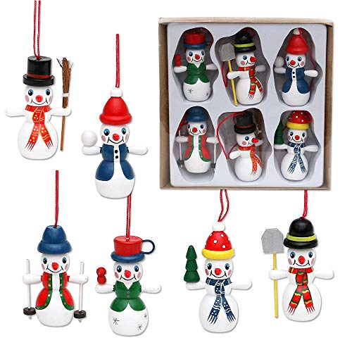Dekohelden24 Trä snögubbe som hängare/trädhänge i set om 6, mått på varje hänge L/B/H: 4 x 2,5 x 6,5 cm.
