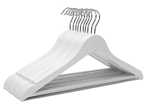 Vitt trä brudklänning hängare trä klädhängare, slitstarka klädhängare, massiva trähängare för skjortor, jackor, byxor, bröllopsklänning, brudtärna kostymer 10-pack – HL01W