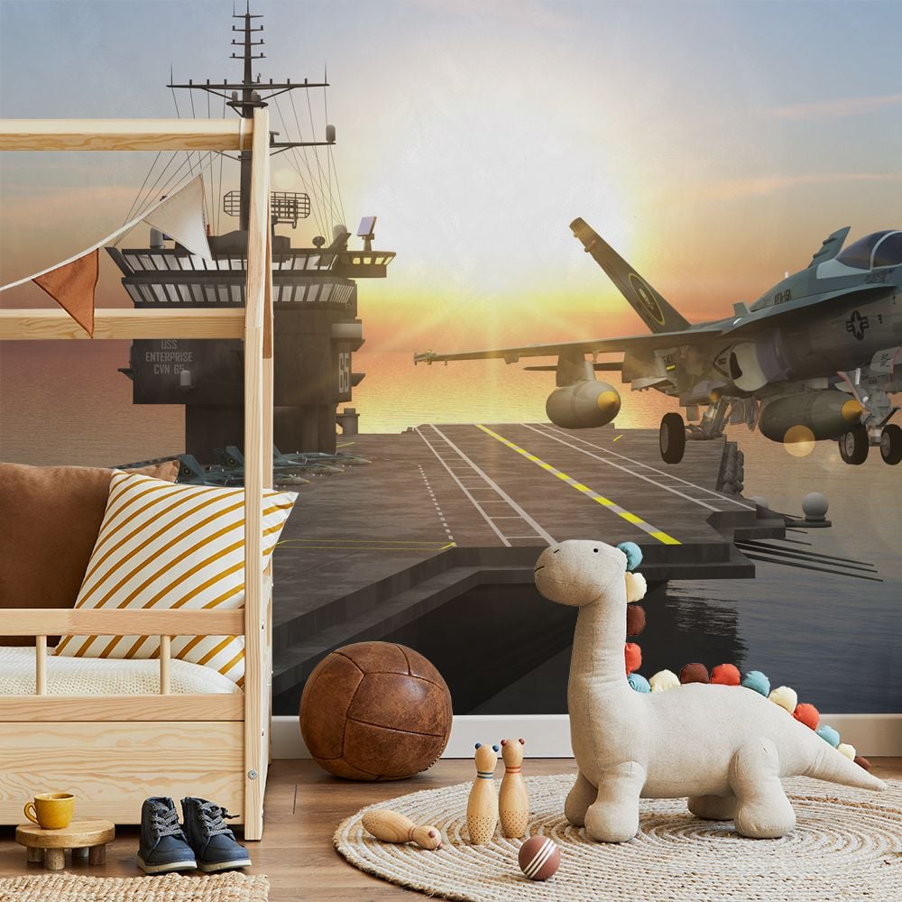 Fototapet -Hangarfartyg start - Barnrum - Scandiwall - Flygplan