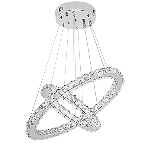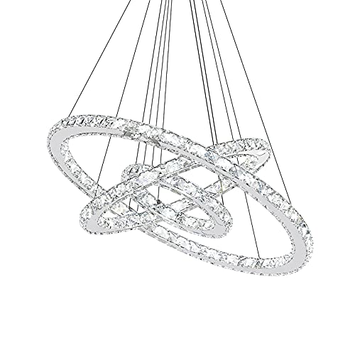 UISEBRT 48 W LED taklampa dimbar kristalldesign modern kreativ höjdjusterbar ljuskrona hänge lampa tre ringar matsal sovrum vardagsrum, kall vit [energiklass A ++]