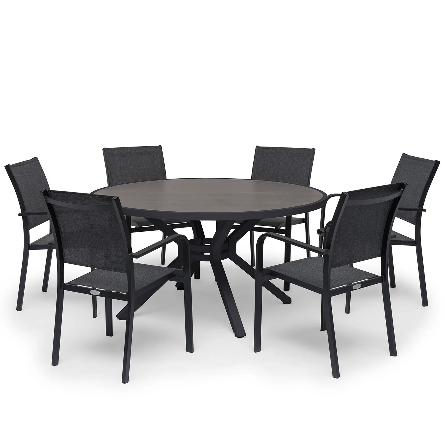 Hånger matgrupp svart - 6 stolar - Ø140 cm
