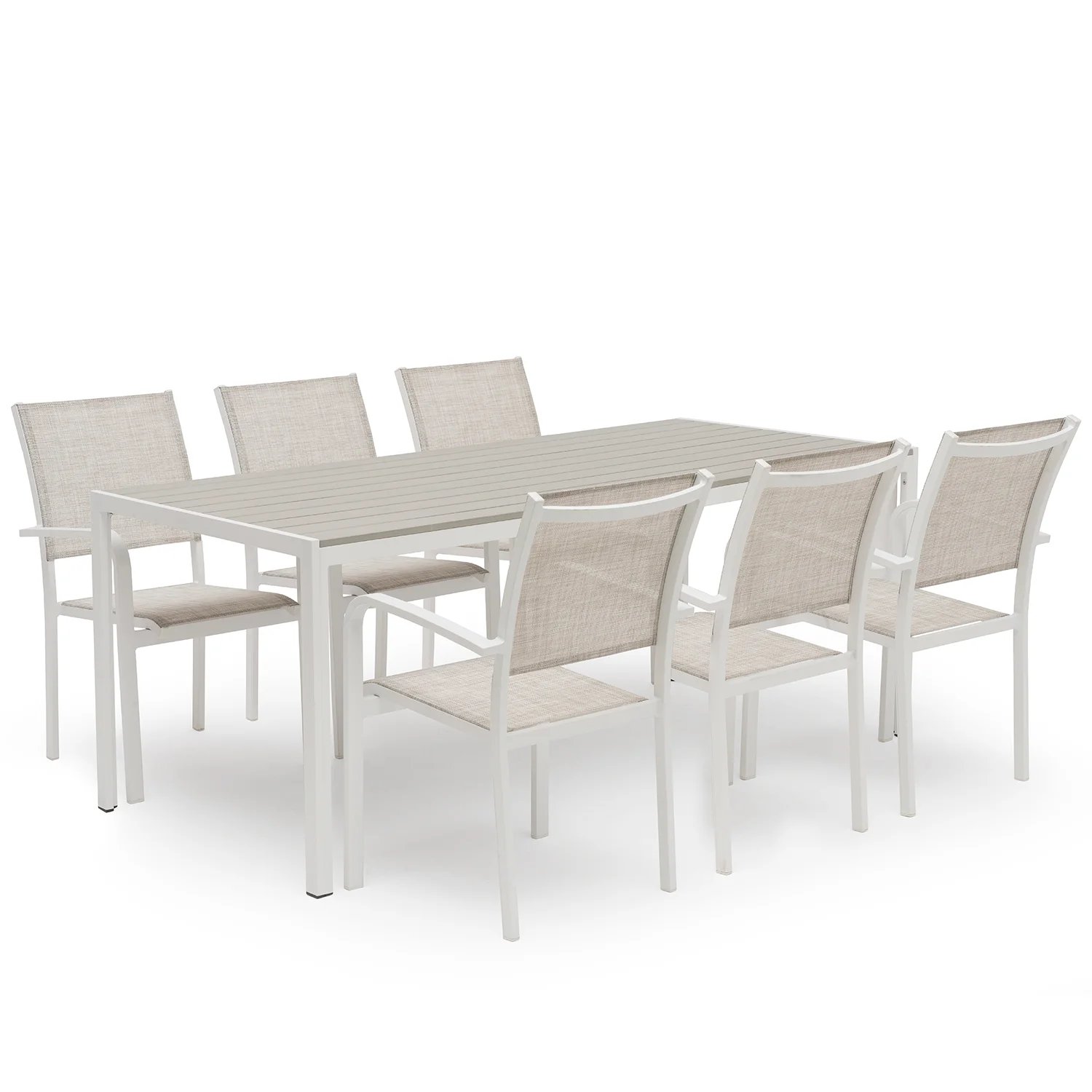 Hånger matgrupp vit - 6 positionsstolar - 210x90 cm