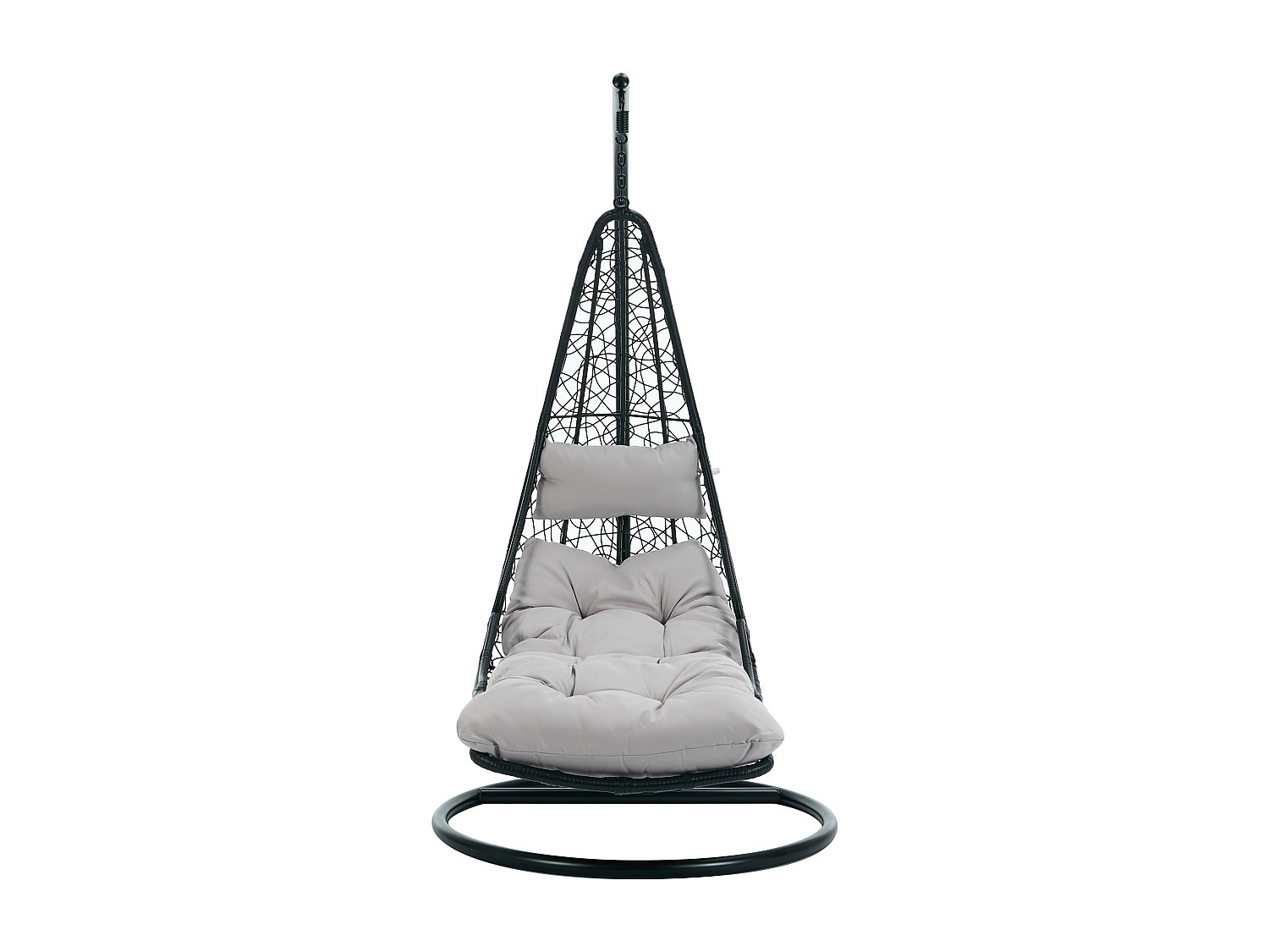 Hängfåtölj i flätad konstrotting med grå dynor- svart - LUVA från MYLIA
