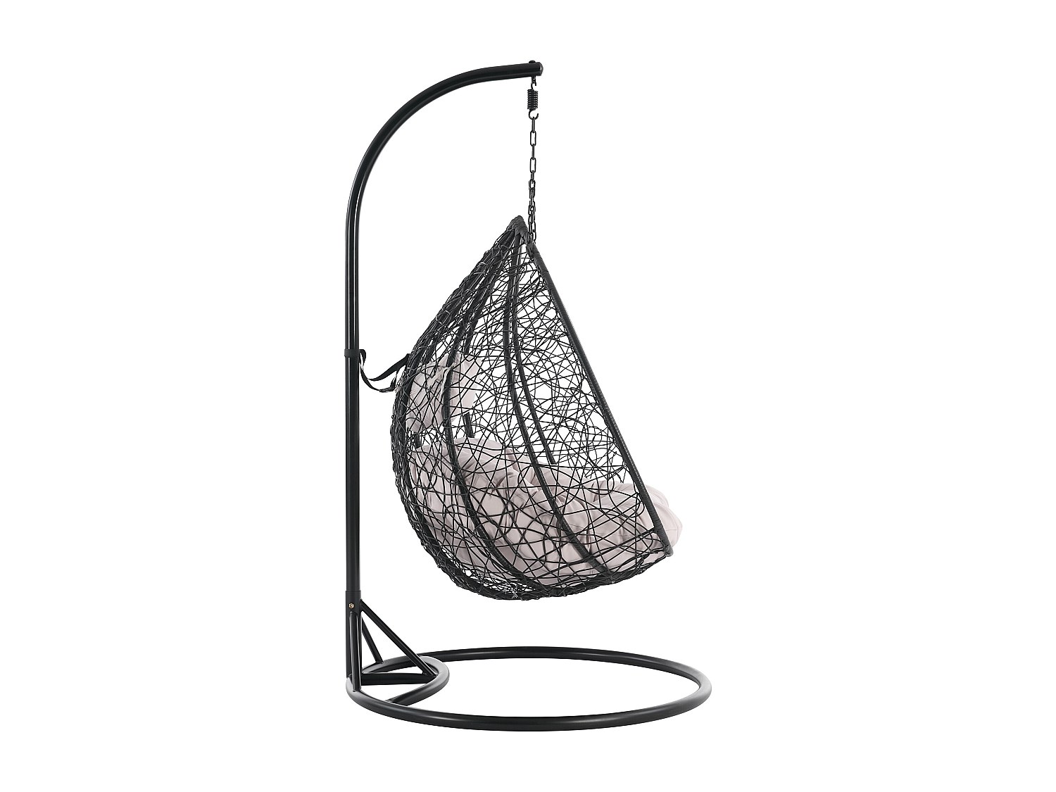 Hängfåtölj i flätad konstrotting med vita kuddar - svart- OROSI