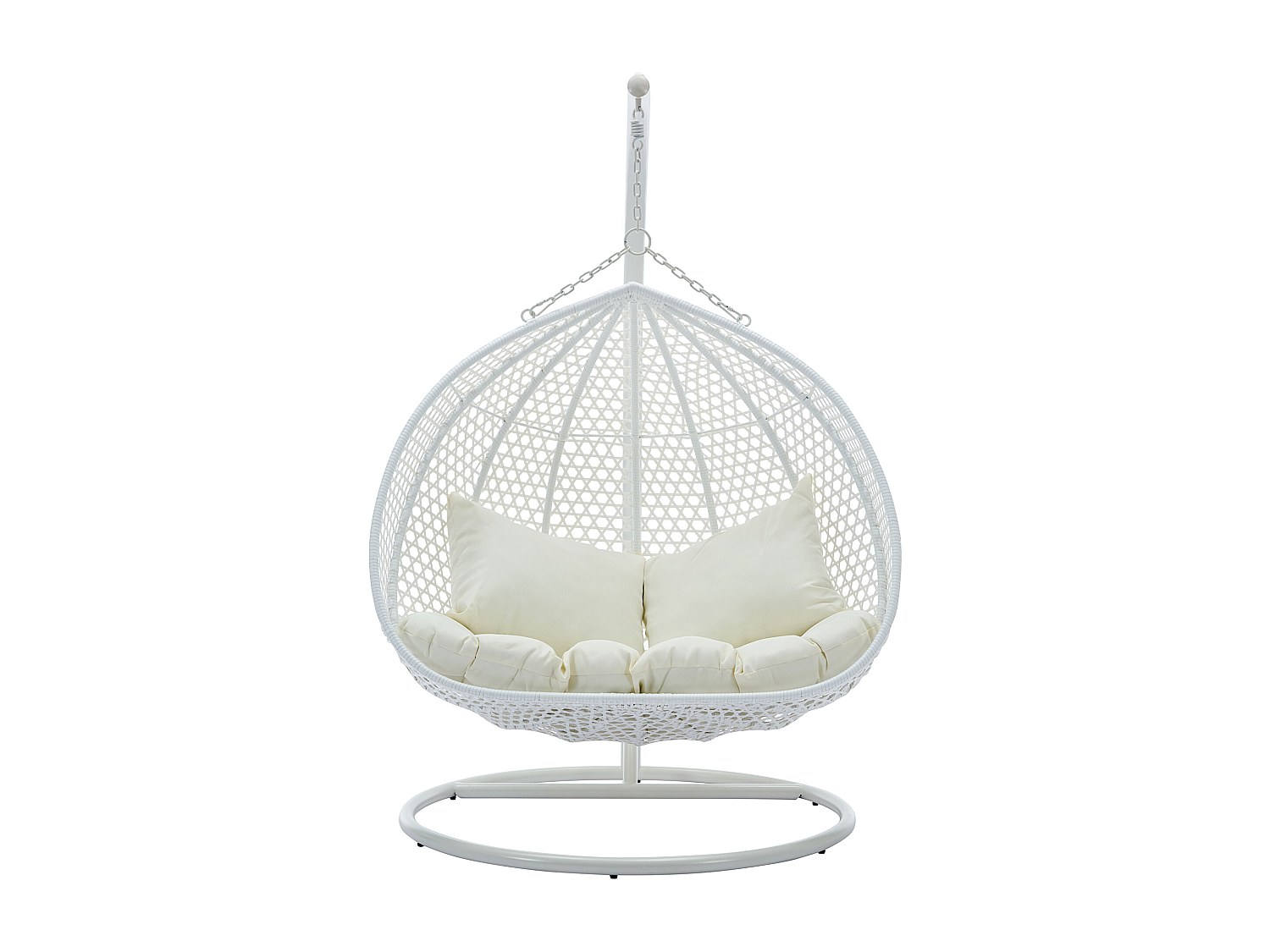 HinHocker Hängstol med stomme för 2 personer, gräddvit, XXL-hänggunga för inomhus- och utomhusbruk inkl. kudde och dyna, dubbelsits, korgfåtölj, hängstol för terrass, hängfåtölj