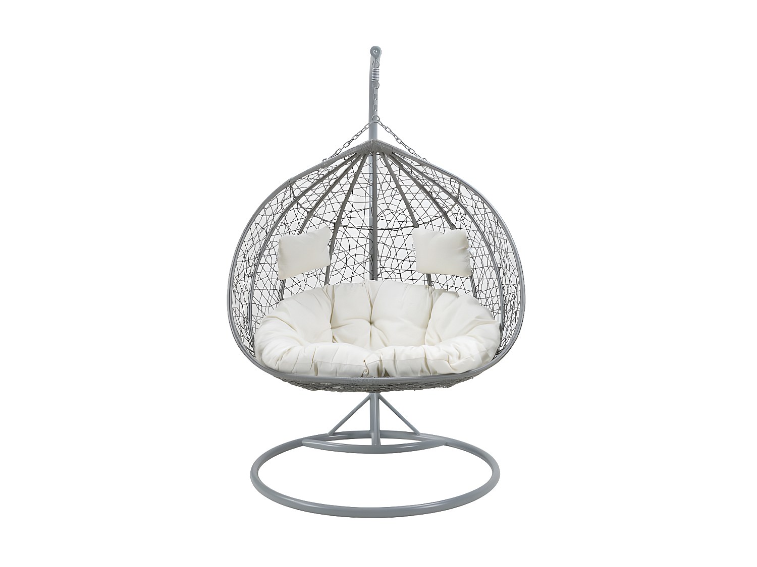 Hängfåtölj för 2 personer i flätad konstrotting med gråa kuddar - grå- CAYAMBE MYLIA