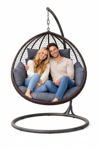 HinHocker Hängstol med stomme för 2 personer, brun, XXL-hänggunga för inomhus- och utomhusbruk inkl. kudde och dyna, dubbelsits, korgfåtölj, hängstol för terrass, hängfåtölj
