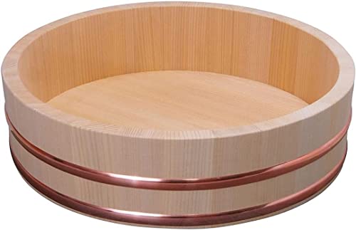 TIKUSAN Trä Hangiri Sushi ris blandningsbadkar kopparband tillverkat i Japan sushi risskål sushi ok (33 cm)