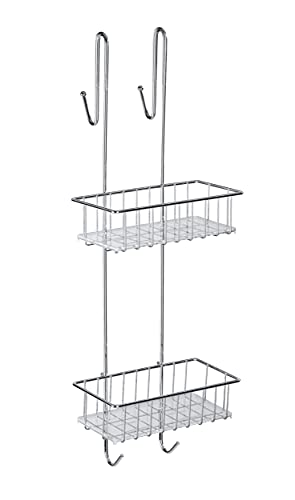 WENKO Duschcaddy Aldo 2 delar duschunderlägg, för duschgel, schampo & Co, hängkorg för badrum, fastsättning utan borrning, rostfritt stål, 24,5 x 70 x 20 cm
