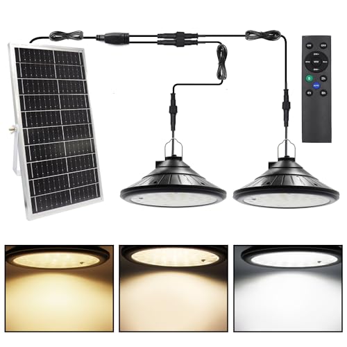 2 LED Hängande Solcellslampor Utomhus med Fjärrkontroll. Solar Hänglampor Utomhus Inomhus, Solpanel, 3200K 4800K 5200K Dimbar IP66 Vattentät Solar Pendelljus för trädgård, terrass, uteplats, garage