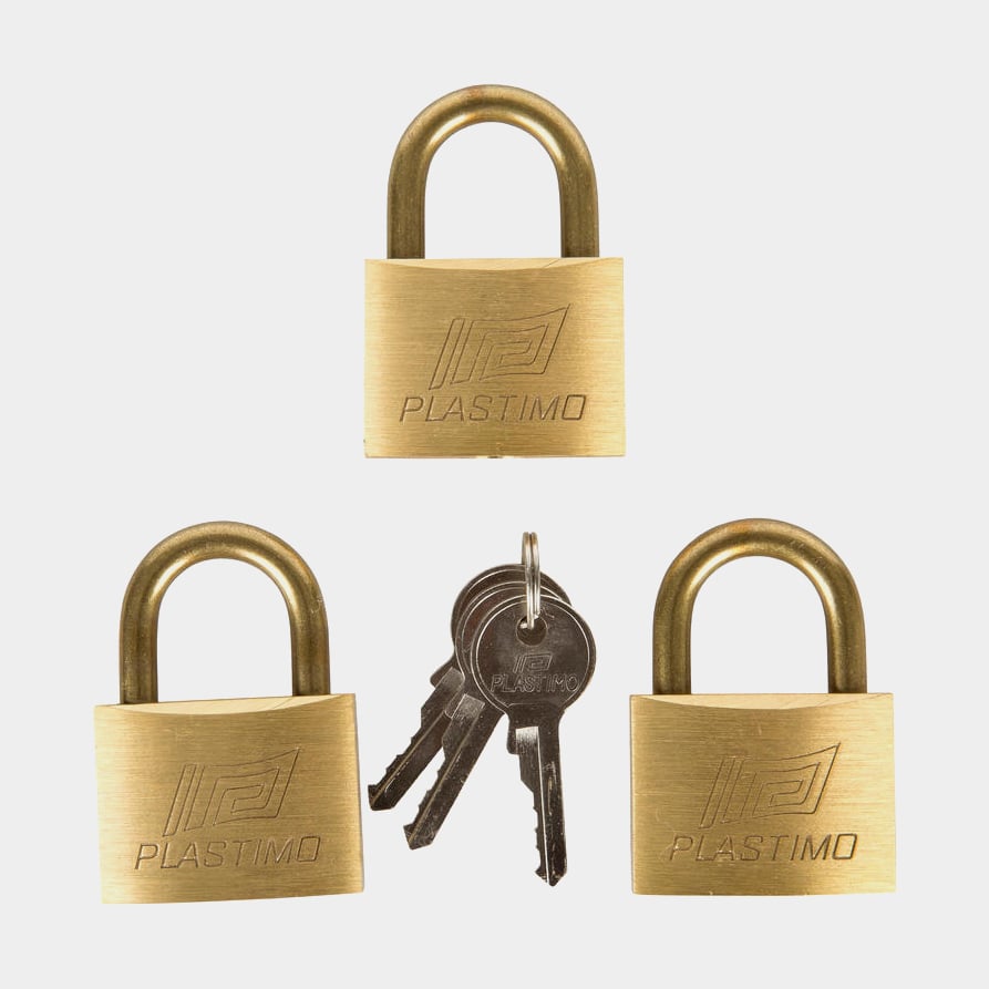 Hänglås Plastimo 30, Ø4 mm, lika låsning, mässing, 3-pack