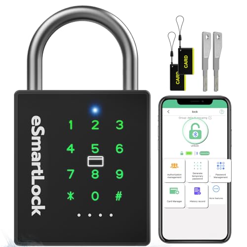 Anweller Kraftigt smart hänglås, Bluetooth-hänglås med kod och RFID, utomhus väderbeständig kodkombinationslås för grindar, skjul, staket, garage, skåp, behållare