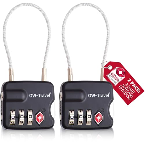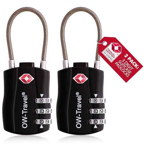OW-Travel TSA-godkänd Kabellås (Svart 2-pack) 3-siffrig kod TSA Lås Godkänd Säkerhet Ryggsäck Hänglås Resväska, Lås, Kombinationslås med Kabel resväska lås, Gymskåp, Hänglås
