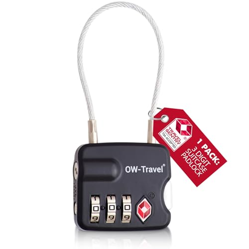 OW-Travel TSA-godkänd Kabellås (Svart 1-pack) 3-siffrig kod TSA Lås Godkänd Säkerhet Ryggsäck Hänglås Resväska, Lås, Kombinationslås med Kabel resväska lås, Gymskåp, Hänglås