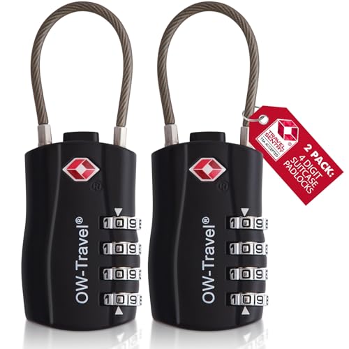 OW-Travel TSA-godkänd Kabellås (Svart 4-pack) 4-siffrig kod TSA Lås Godkänd Säkerhet Ryggsäck Hänglås Resväska, Lås, Kombinationslås med Kabel resväska lås, Gymskåp, Hänglås