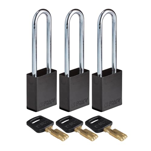 Brady SafeKey låsbart hänglås aluminium svart 3,0" stål Shkl nyckel lik 3 st.