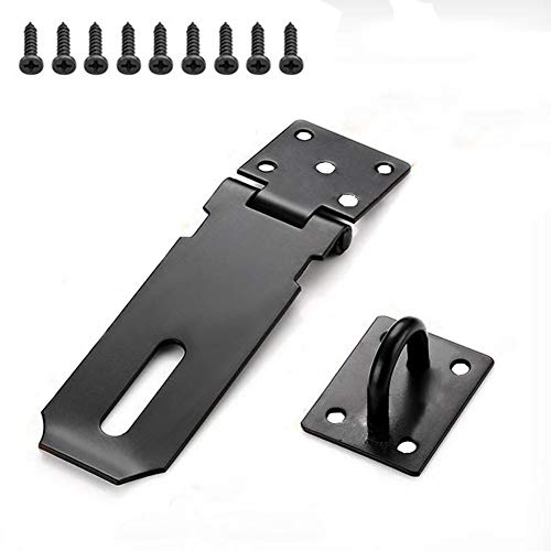 SAYAYO dörrspärr bultlås med hänglås, rostfritt stål Skjutgrindsspärr med hänglås, svart dörrspärr, låsbar spärr för grind, fönster, staket, EMST8100-B