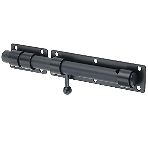 SAYAYO Lås ytterdörrspärr skjutbult dörrlås lås med hål för hänglås, matt svart finish i rostfritt stål, EMS9200-B (hänglås ingår inte)