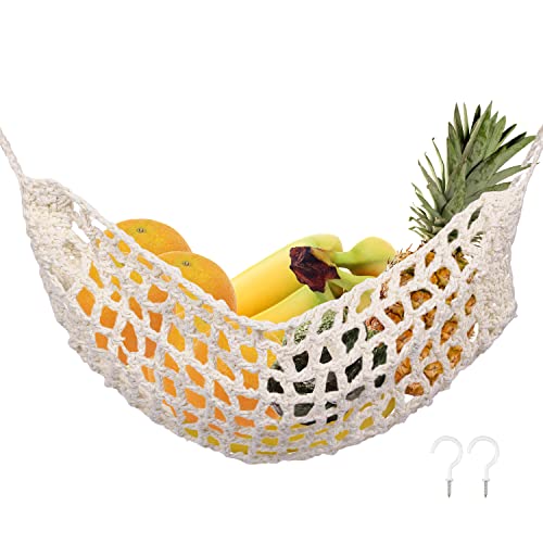 31,8x40,6cm Hängmatta för Frukt, Hängande Frukthållare med 2 Krokar 100% Bomull Handgjorda Vävda Utrymmesbesparande Fruktkorg under Skåp för Kök Fartyg Förvaring