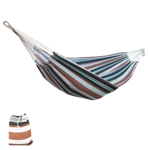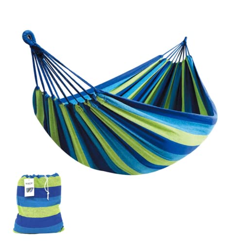 Hängmatta i bomull för trädgård, terrasser, resor, camping. Hängmatta för 2 personer utomhus med bärväska ingår. (Vikt upp till 150 kg - Mått 150 x 180 cm)
