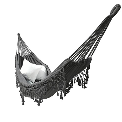 Anyoo Utomhus trädgård hängmatta bomull makramé hängmatta med trädremmar, bärbar kompakt hängmatta med bärväska för balkong uteplats veranda gård mörkgrå