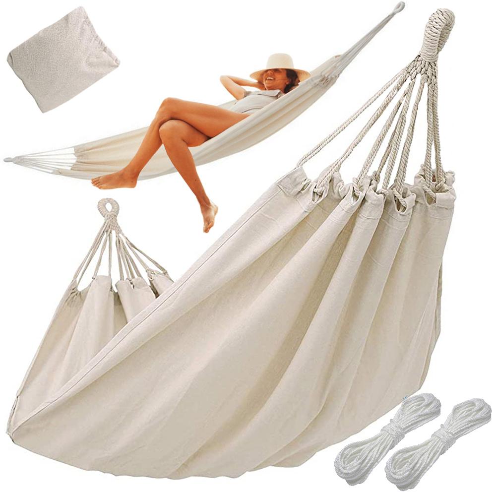 ANYOO Hängmatta utomhus bomull multipersoner 210 x 150 cm, lastkapacitet upp till 200 kg bärbar med bärväska för terrass, trädgård, trädgård