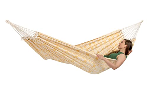 AMAZONAS XXL hängmatta Carioca guld jacquard liggyta 250 x 175 cm för 2 personer upp till 200 kg i naturligt ljusgul av återvunnen bomull, mjuk mycket stabil ädel look, handvävd (guld)