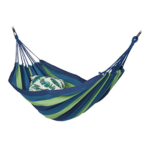 Relaxdays Hängmatta, XXL, hängande stol 2 personer, upp till 300 kg, bärbar, inomhus- och utomhusbruk, bomull, 150 x 272 cm, blå-grön