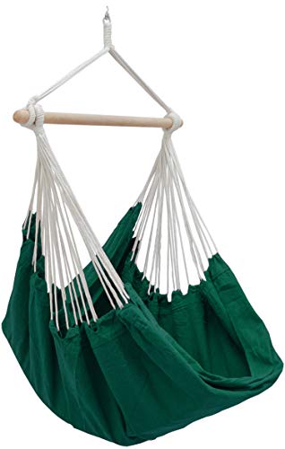 Amanka hängande stol för sittplats 2 personer hängmatta 185 x 130 cm stol 100% bomull swing XXL 150 kg säte för att svänga mörkgrön