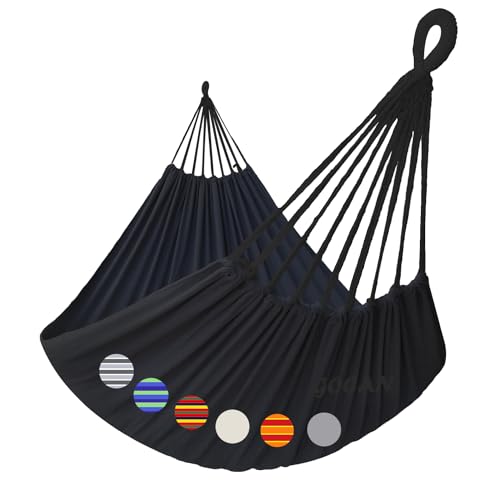 GOCAN Hängmatta utomhus 2 personer 220x150cm total längd 330cm belastning 300kg hängmatta i canvas bomull för trädgård inomhus barn balkong svart XXL