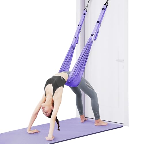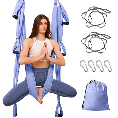 Leogreen Luftyogahängmatta kit, yoga omvänd hängmatta, för yoga mot gravitation, nylon, taft, kapacitet 300 kg (ljuslila)