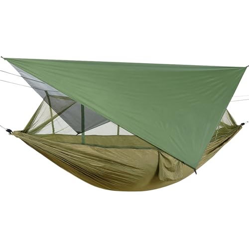 CIRULLI Hängmatta med myggnät – 260 x 140 cm, 300 lb lastkapacitet, ultralätt och robust, bärbar fallskärm hängmatta dubbel nylon, hängmatta utomhus för camping och trädgård, hammock inklusive hängset