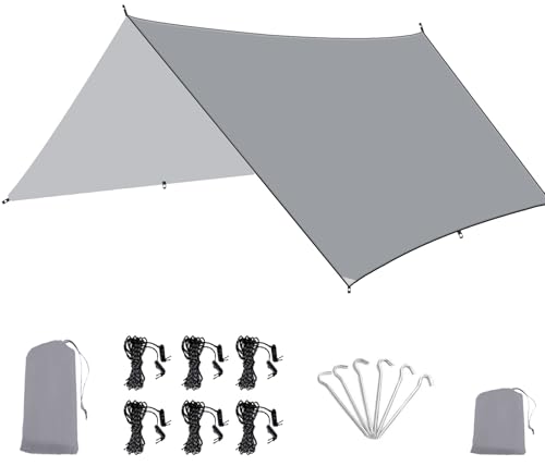 RYACO Tarp 3 x 5 m vattentät tältpresenning ultralätt med öljetter 6 jordspikar 6 rep, anti-UV snö regnskydd lätt kompakt för hängmatta camping vandring picknick resor utomhusaktiviteter