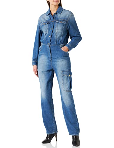 Tommy Jeans Dora jumpsuit N/S hängselbyxor för kvinnor, Blå – blå (Colony Blue-pt/Egret-pt 420), 29W x 34L