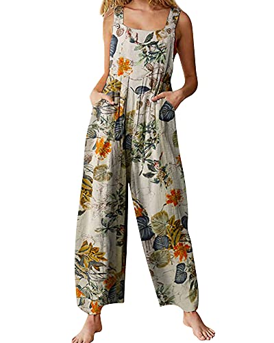 Acrawnni Hängselbyxor för kvinnor vintage blommigt tryck lös ledig säckig ärmlös overall lång overall lekdräkt byxor sparkdräkt, C-gul, M