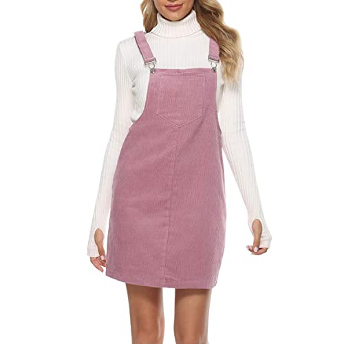 Petalum Hängselklänning dam snöre A linje minikjol knäppning klänning höst vinter overall hängselklänning med ficka, Rosa 1, L